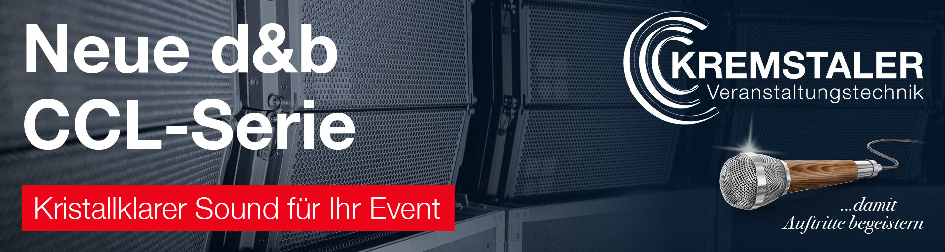 NEU seit Herbst 2025: Wir heben unsere Event-Tontechnik für Ihre Veranstaltung auf ein neues Niveau. Die neue d&b audiotechnik CCL-Serie bietet kristallklaren Sound, flexiblen Einsatz von kleinen Firmenevents bis zu mittelgroßen Konzerten und die Sicherheit modernster Soundtechnik.